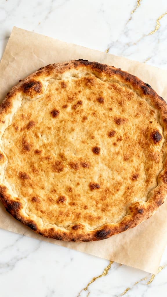 Let the crust cool for 3–5 minutes to firm up. Then top with pizza sauce, cheese, or your favorite toppings. Return to the oven to melt cheese if needed.