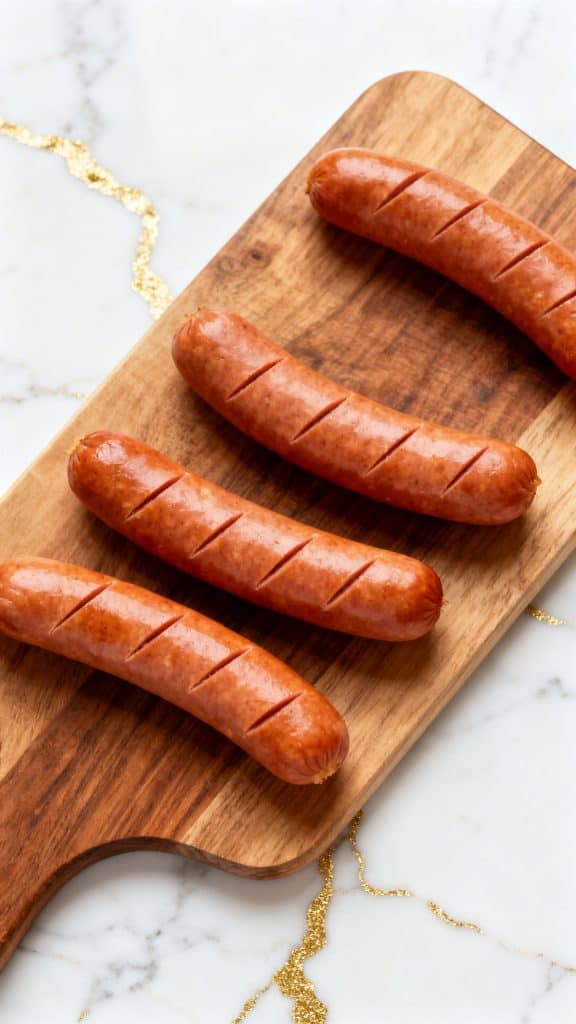 Place 4 whole hot dogs on a clean surface. If you want extra crisp edges, lightly score each hot dog with shallow diagonal cuts.