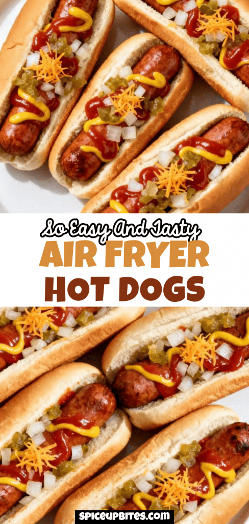 Store leftover hot dogs in an airtight container in the fridge for up to 3 days. Reheat in the air fryer at 350°F for 2–3 minutes. Store buns separately to keep them from getting soggy.