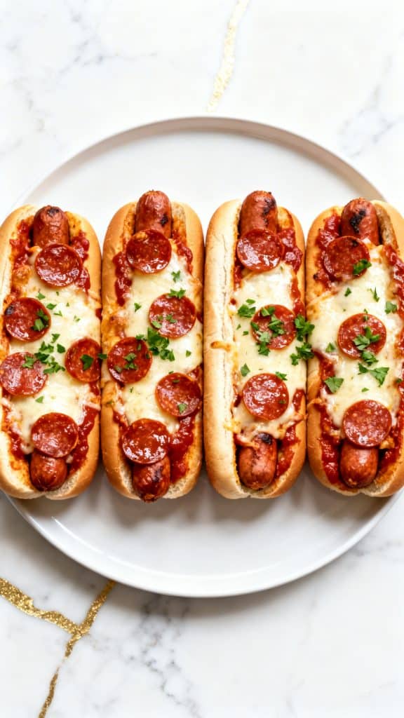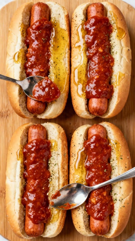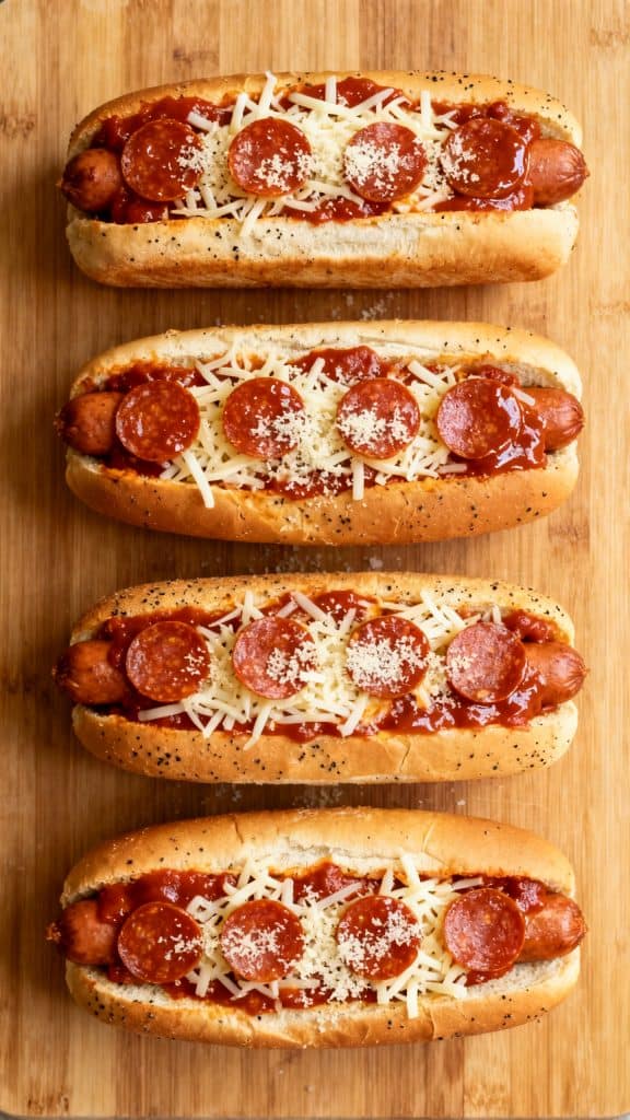 Use a light layer of sauce, brush the buns with the seasoned butter, and serve the pizza dogs right after cooking.