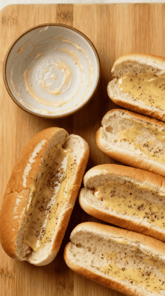 - Brush the buns lightly, not heavily, with the butter mixture so they crisp instead of turning greasy.
