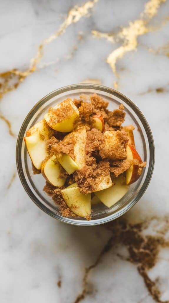 In a small bowl, mix 2 diced and peeled Granny Smith apples with ⅓ cup brown sugar and ½ tsp cinnamon.