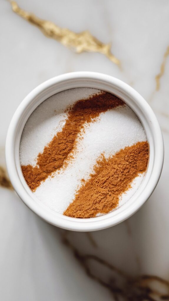 In another small bowl, stir together ½ cup white sugar and 1 tbsp cinnamon.
