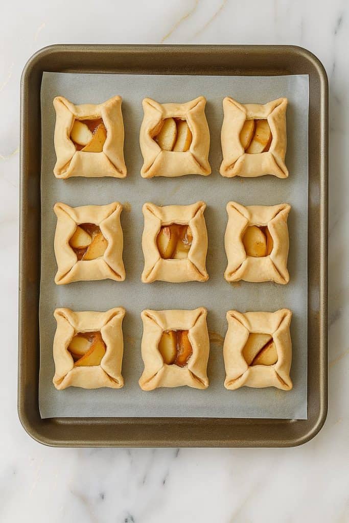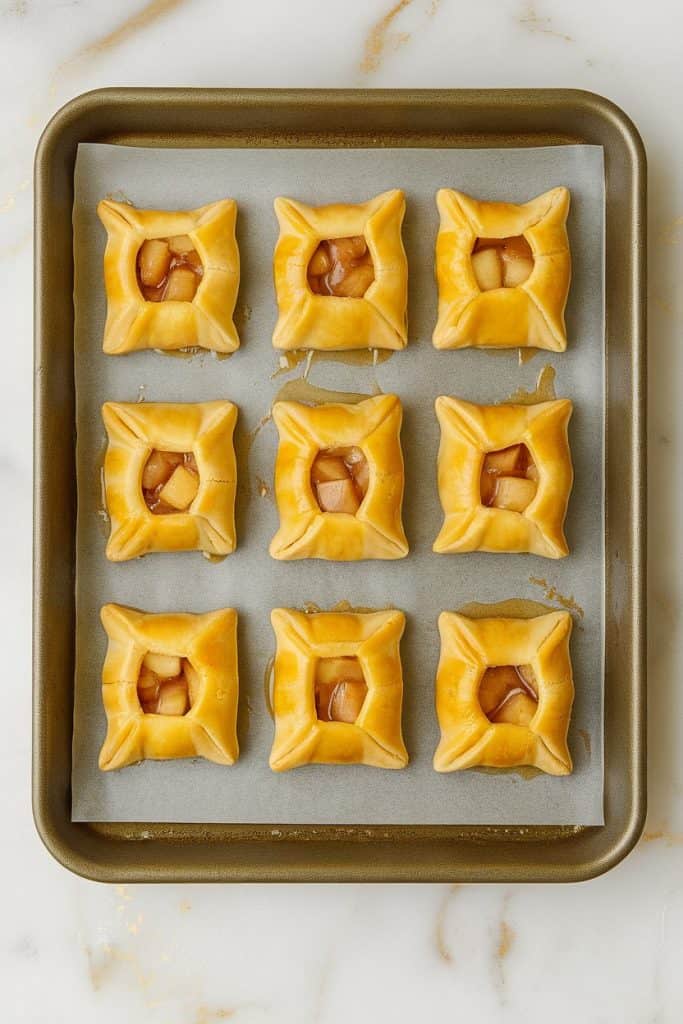 Place the filled pastries on a parchment-lined baking sheet and bake at 400°F for 14–16 minutes until golden and puffed.