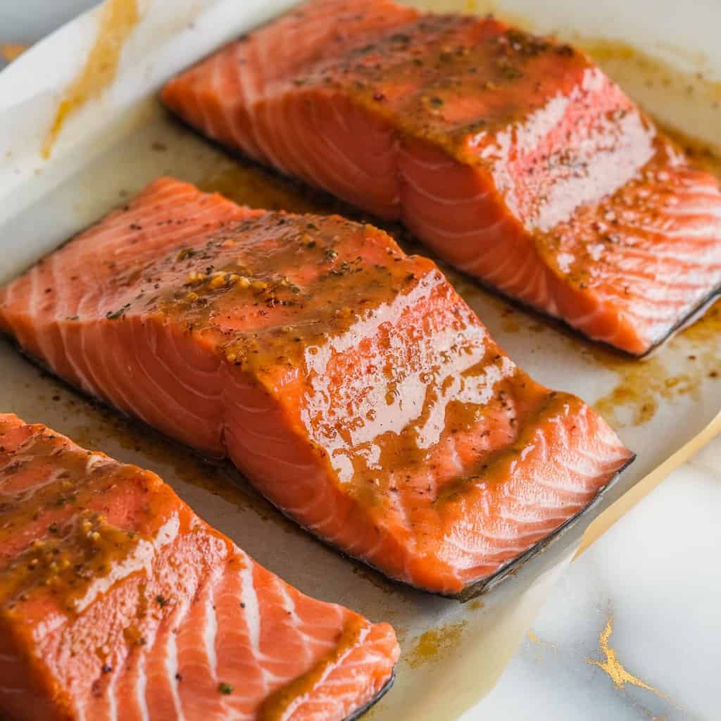 The sugars in apple cider and brown sugar caramelize under heat, forming that sticky glaze that clings to the salmon. Dijon mustard brings acidity and emulsifies the sauce, making it smooth and rich. Roasting at a high temp locks in moisture while crisping the edges.