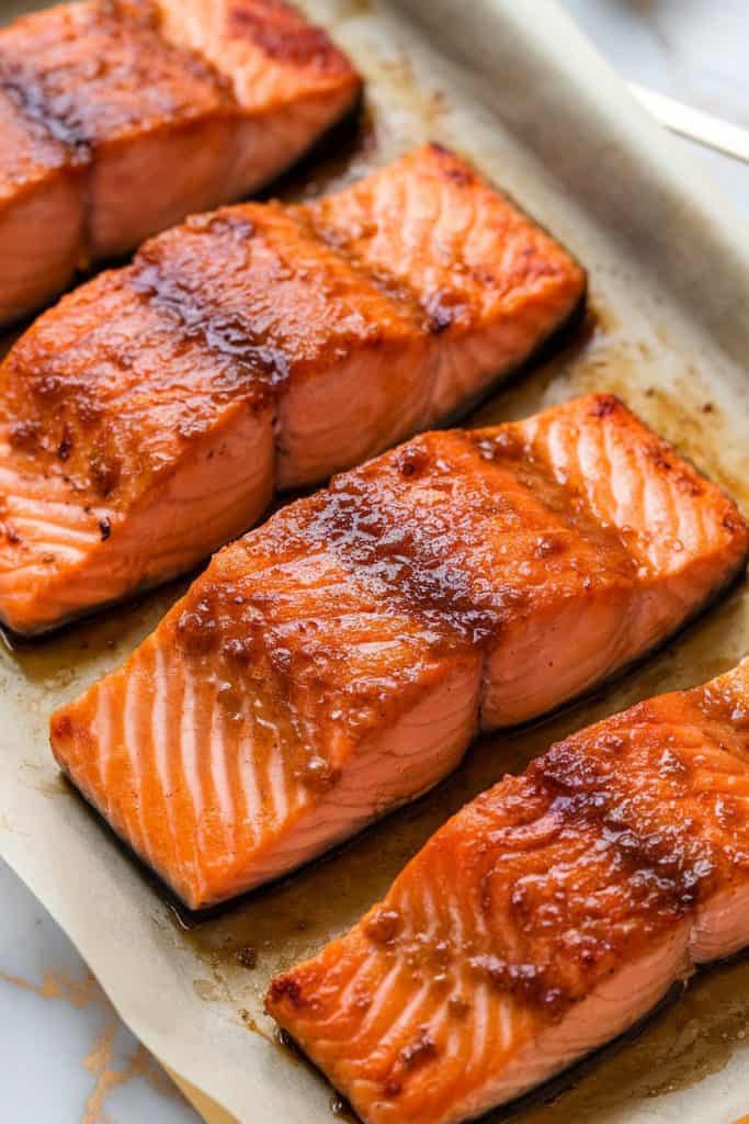 Store leftover salmon in an airtight container in the fridge for up to 3 days. Reheat gently in the oven at 300°F or eat cold on a salad or grain bowl. Glaze may thicken more after chilling — just warm slightly to loosen.