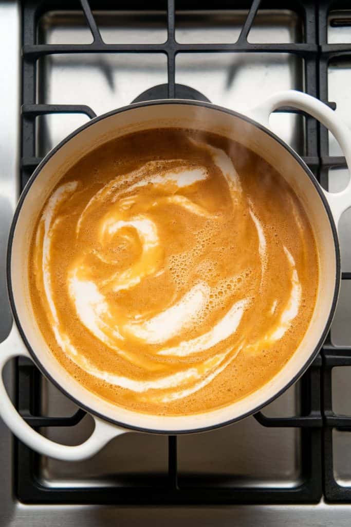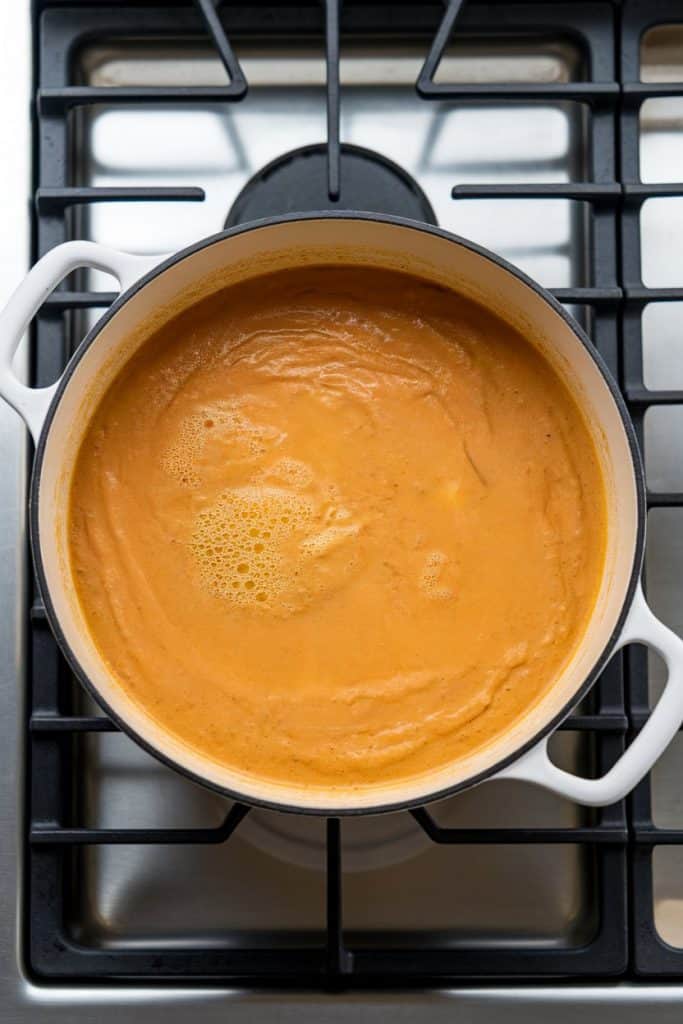 Turn off the heat and let the soup cool slightly. Blend until smooth using an immersion blender or regular blender in batches.
