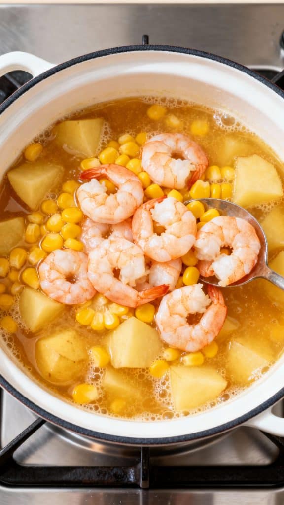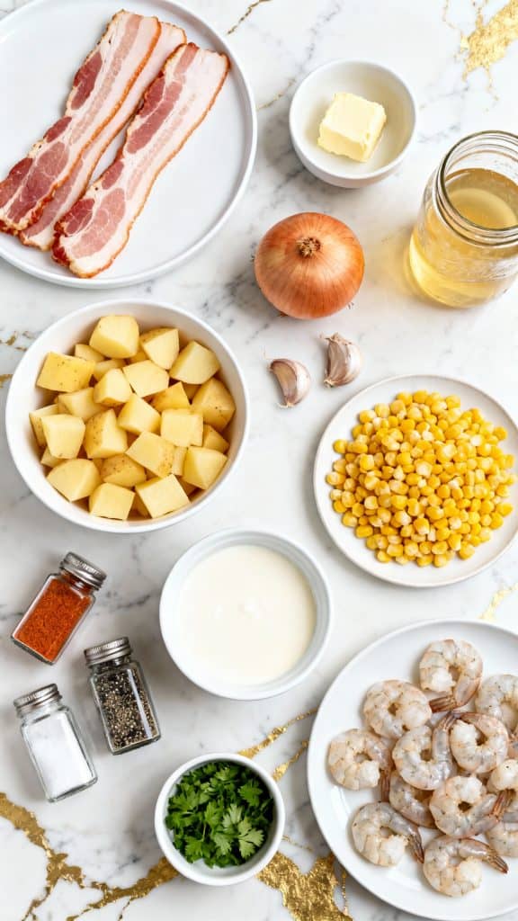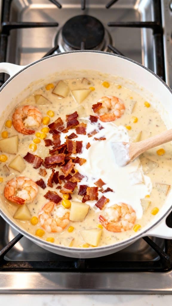 Itâs got smoky bacon, tender shrimp, sweet corn, and hearty potatoesâall swimming in a rich, creamy broth.