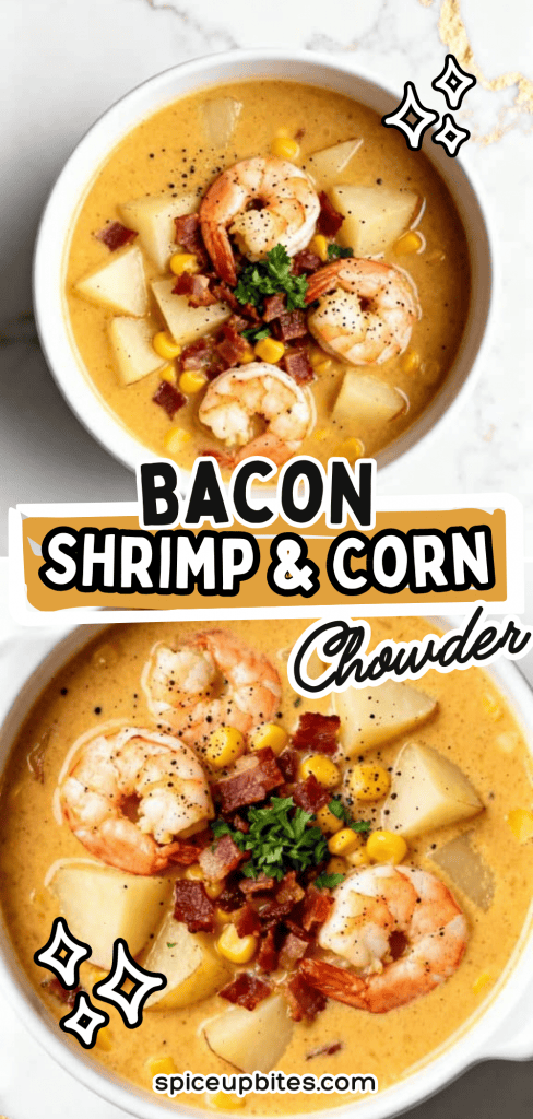 This Bacon, Shrimp & Corn Chowder is cozy, creamy, and loaded with flavor.