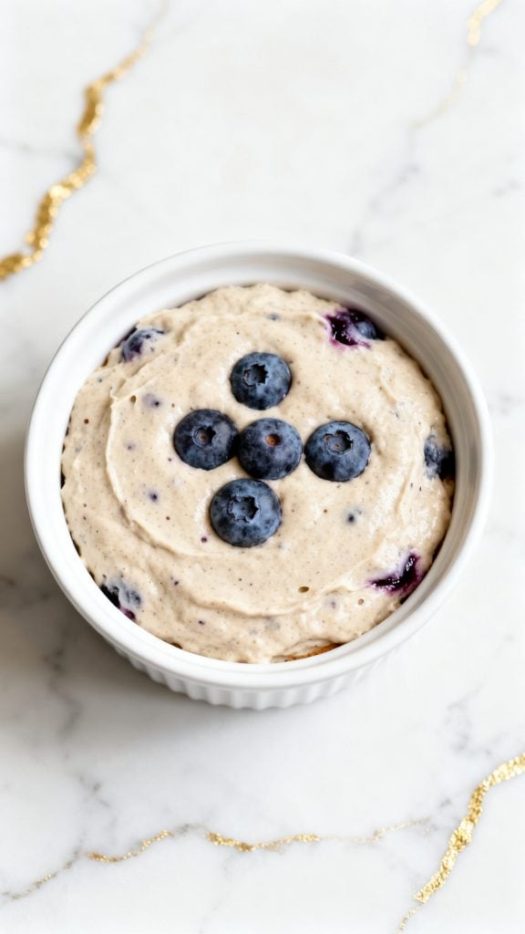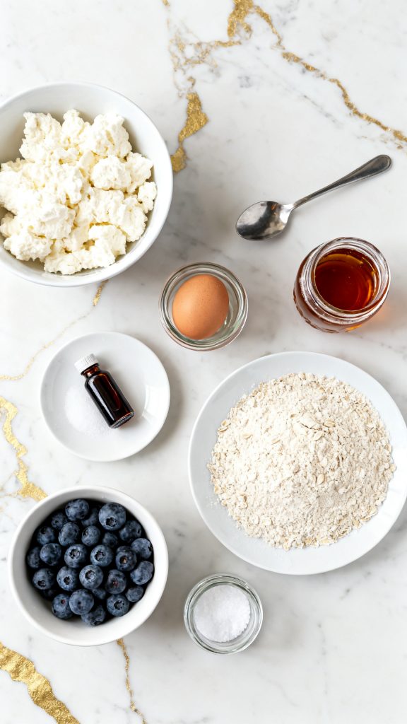 Cottage cheese gives it creaminess and protein. The egg binds everything and adds fluffiness. Oat flour thickens it just enough so it bakes up like a mini custard-cheesecake hybrid. The blueberries burst and sweeten it naturally. Baking gently solidifies everything without drying it out.