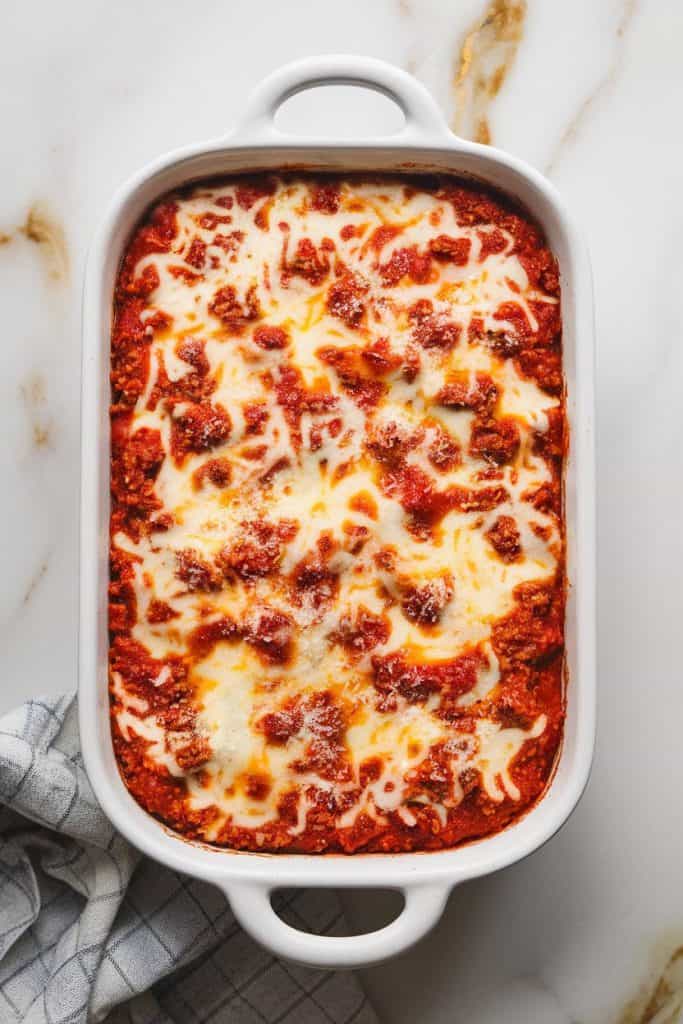 You can assemble the whole dish up to 1 day ahead. Cover and refrigerate, then bake as directed — just add 5 extra minutes if baking from cold. It also freezes well: assemble, wrap tightly, and freeze before baking. Thaw overnight in the fridge before baking.