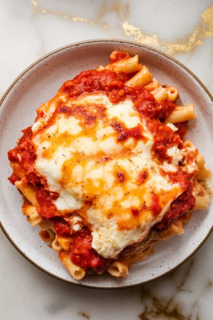 Let the baked ziti sit for 5–10 minutes before serving. Spoon onto plates and garnish with chopped fresh basil or parsley if using.