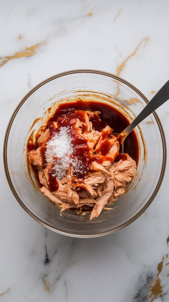 - Not seasoning the chicken before mixing: Even BBQ sauce needs a little salt and pepper to bring it to life.