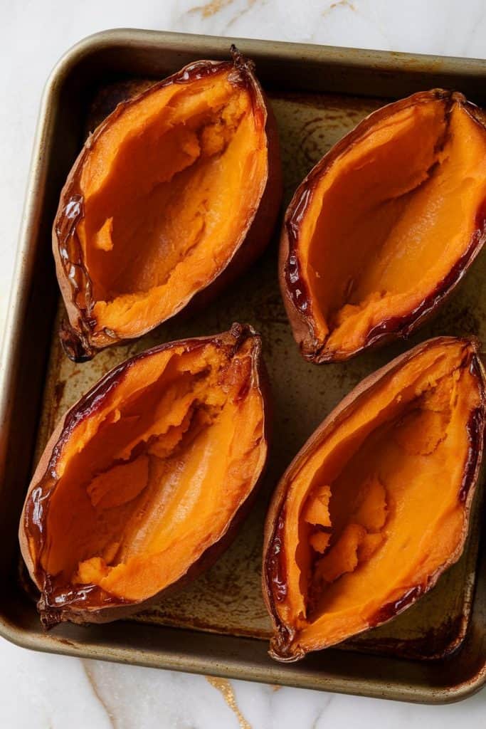- You can roast the sweet potatoes up to 2 days ahead and keep them in the fridge