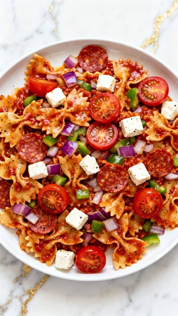 Pizza Pasta Salad brings together tender pasta, cheese, and simple toppings that remind you of classic pizza flavors. It is easy to make and works well as a cold side for BBQ meals. The mix of textures keeps it interesting, while the flavor stays familiar and easy to enjoy for both kids and adults.