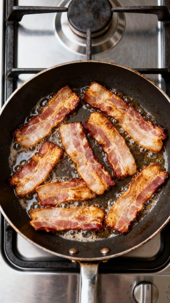 Place 10 bacon slices in a large skillet. Cook over medium heat until crispy, about 8–10 minutes, flipping halfway. Transfer the cooked bacon to a plate lined with paper towels, then chop into small crispy pieces.