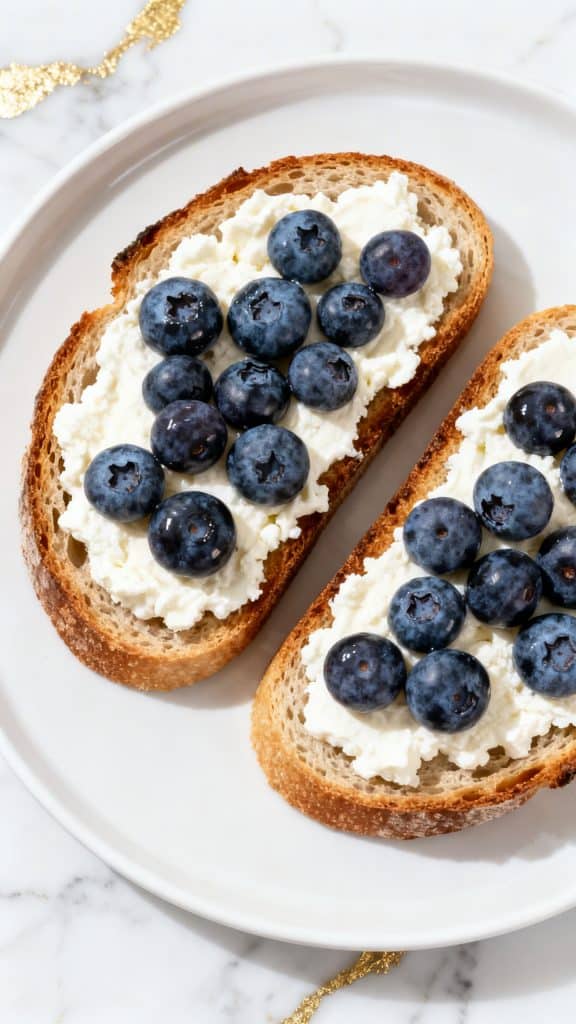Cottage cheese is high in protein, especially casein protein, which digests slowly. That means it keeps you full longer. The healthy fats from almonds slow digestion too. The fiber in blueberries helps balance the natural sugars. And toasting the bread removes moisture, which keeps it from getting soggy when you add the creamy topping.