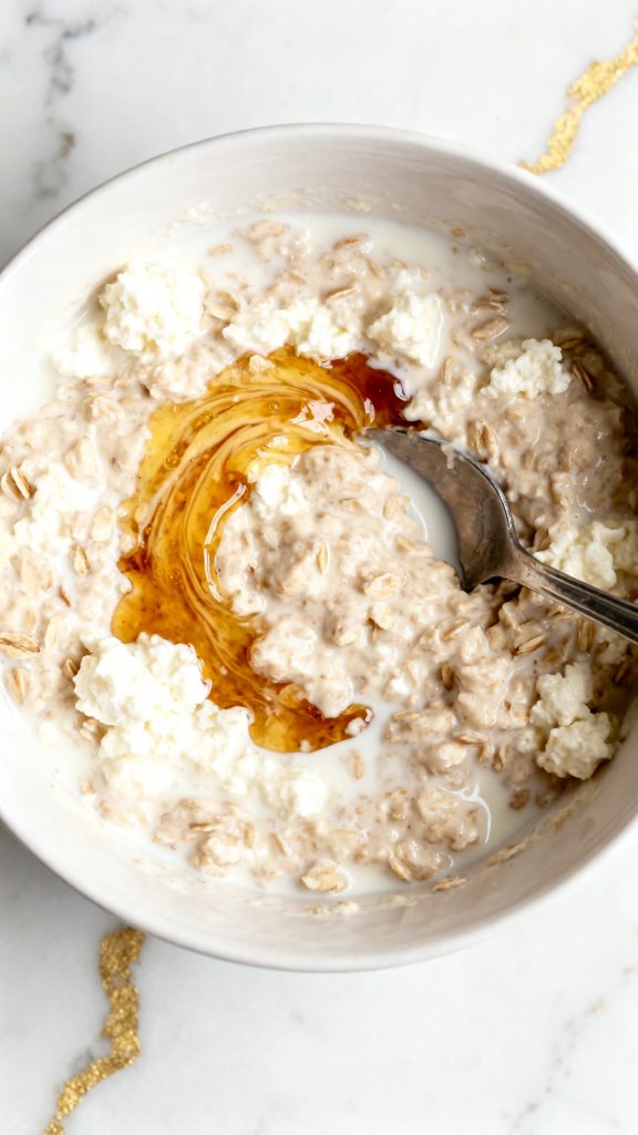 - Stir well so the cottage cheese blends into the oats—it gets super creamy