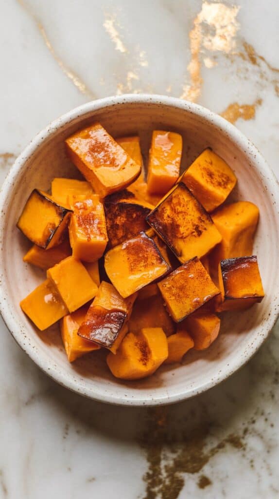 Sweet, buttery, a little bit caramelized on the edges — it’s roasted butternut squash with brown sugar and a touch of cinnamon, and it’s so good.