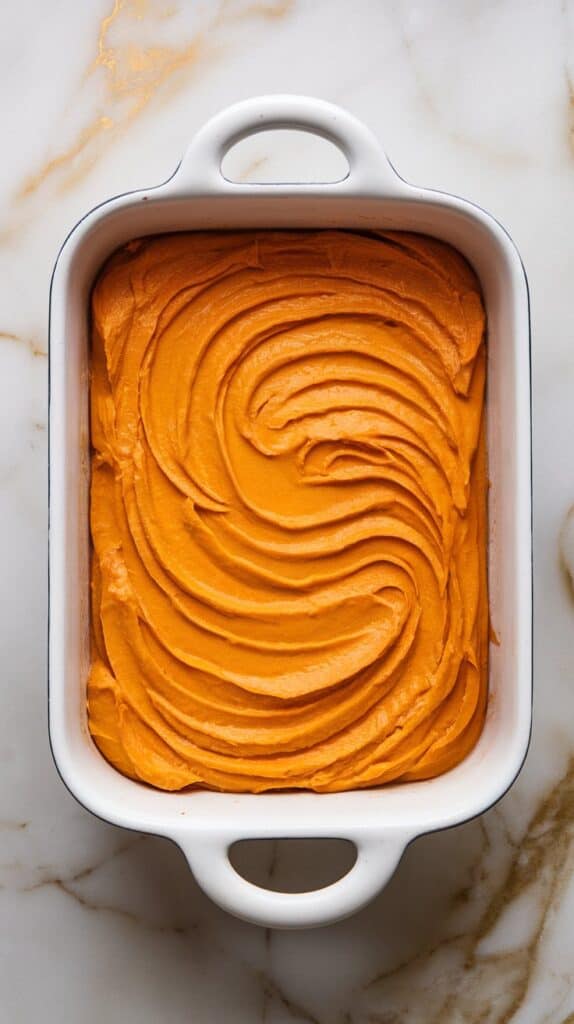 Spoon the squash mixture into a greased 8×8-inch baking dish and spread it out evenly.