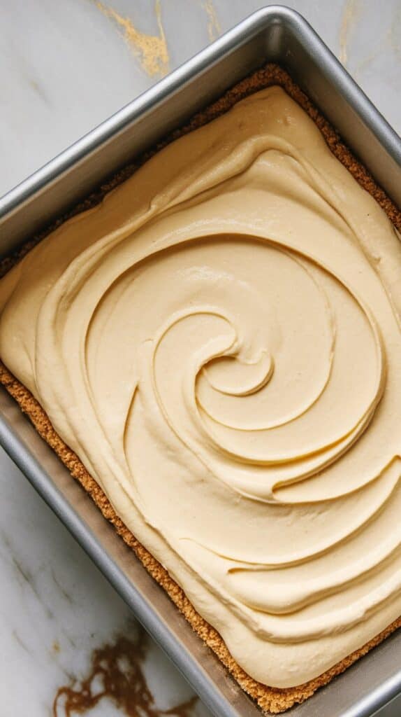 Bake the whole pan at 350°F (175°C) for 35–40 minutes, until the center is set and the top is golden brown. Cool completely, then chill for at least 2 hours.