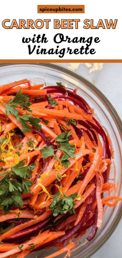 That’s it! A bright, crunchy, fresh Carrot Beet Slaw with Orange Vinaigrette that you can toss together in minutes. It’s a little sweet, a little tangy, and full of flavor. Try it out, and let me know in the comments how it turned out—or ask anything if you hit a snag. Happy chopping! 🥕💜🍊
