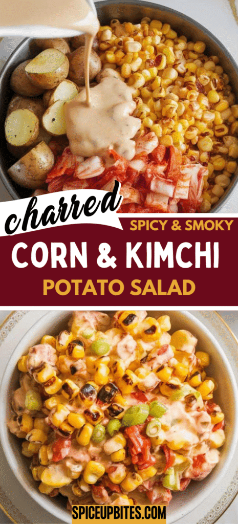 I started making this when I had leftover grilled corn and a jar of kimchi that needed to be used up. I tossed both into a warm bowl of potatoes, added a creamy dressing, and instantly knew I had something special. It’s creamy, crunchy, smoky, tangy, and spicy in the best way.