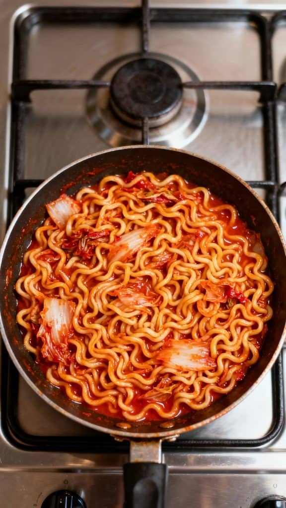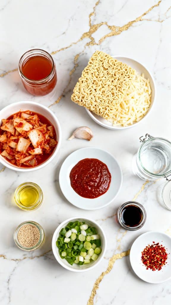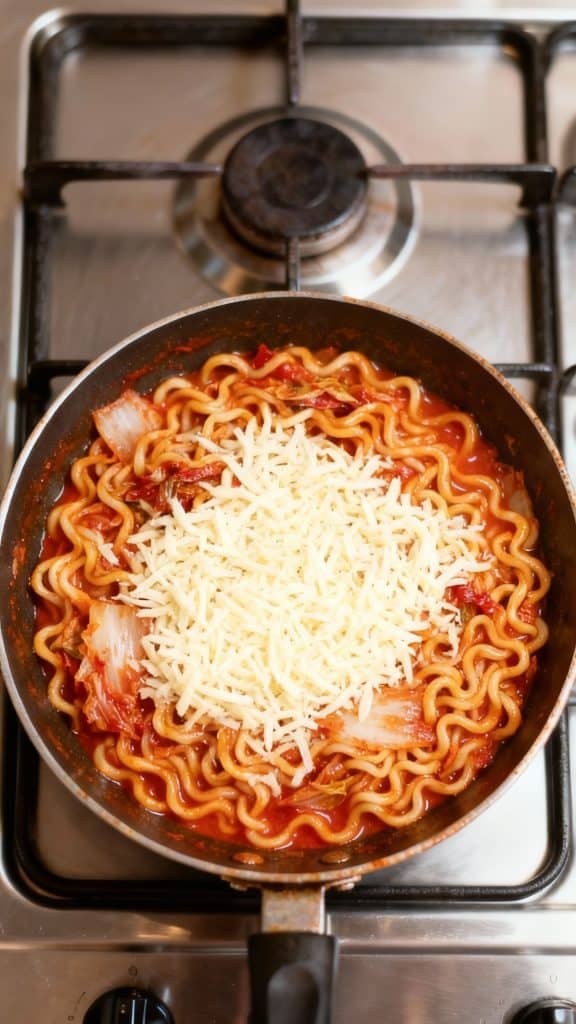 This recipe came together one cold night when I wanted something quick, spicy, and satisfying. I had leftover kimchi in the fridge, a pack of ramen, and a bit of shredded cheese—game on. One pan and 10 minutes later, I was sitting down with the coziest, most flavor-packed bowl of noodles ever.