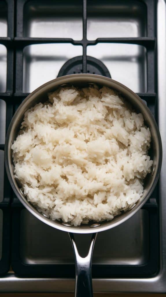In a saucepan, add 1 cup uncooked white rice and 2 cups water. Bring to a boil, then reduce heat to low, cover, and simmer for 15 minutes. Remove from heat and let sit for 5 minutes, then fluff with a fork.