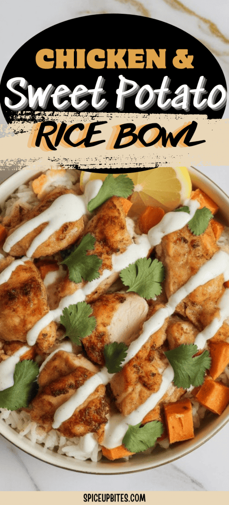 This Chicken and Sweet Potato Rice Bowl is cozy, colorful, and crazy easy. It’s one of those “everything in a bowl” meals that just works — juicy seasoned chicken, caramelized sweet potatoes, fluffy rice, and a creamy yogurt sauce that ties it all together. You’ll want to make this again and again.