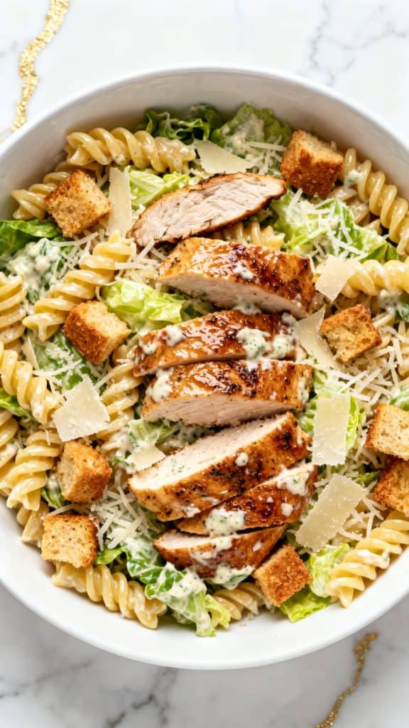 This chicken Caesar pasta salad is one of those recipes I make on repeat. It’s creamy, fresh, filling, and so easy to throw together. You get juicy chicken, crisp romaine, tender pasta, and that classic Caesar flavor in every bite. It feels fancy, but it’s simple enough for a busy weeknight.