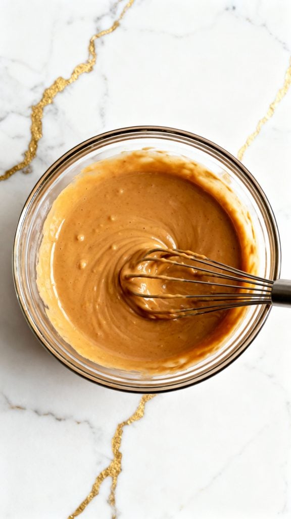 In another bowl, whisk together ½ cup peanut butter, ⅓ cup coconut milk, 2 tablespoons soy sauce, 1½ tablespoons brown sugar, 1 tablespoon rice vinegar, 1 tablespoon lime juice, 1 teaspoon grated fresh ginger, 1 minced garlic clove, and 1–2 tablespoons warm water until smooth.