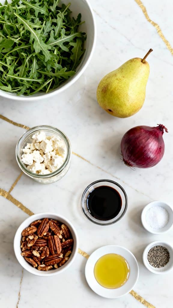 - Arugula has natural peppery flavor that balances the sweetness of pear and honey