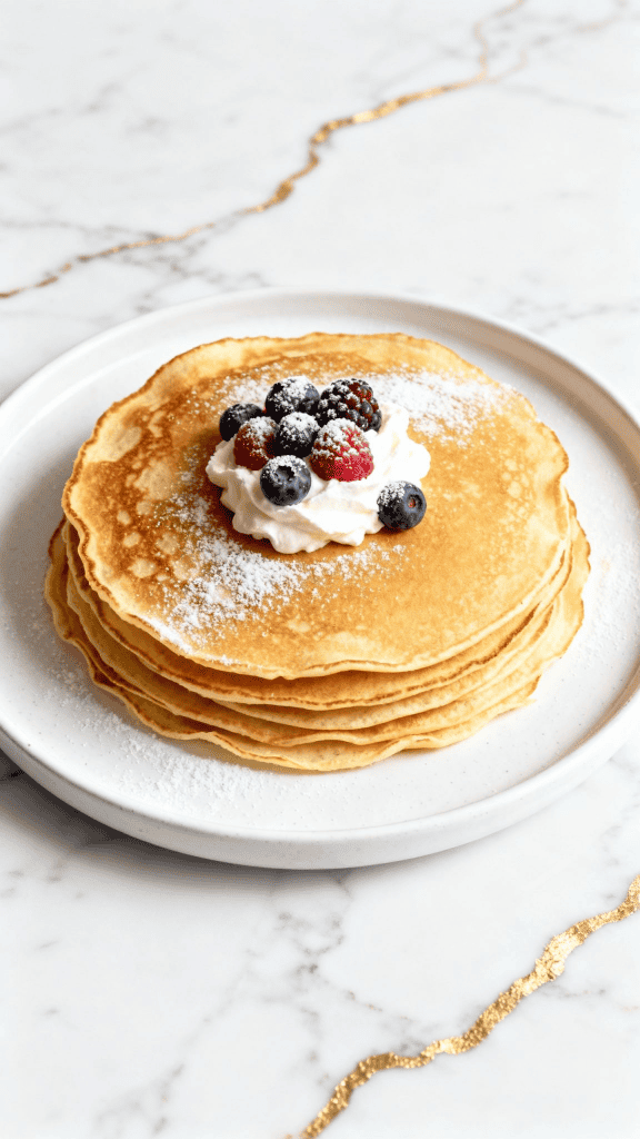 These crêpes are thin, soft, and lightly flavored with eggnog, giving them a subtle holiday twist. They fold or roll easily and can be filled with fruit, whipped cream, or a simple dusting of powdered sugar. The eggnog adds warmth and spice without overpowering, making them a gentle and cozy breakfast option.