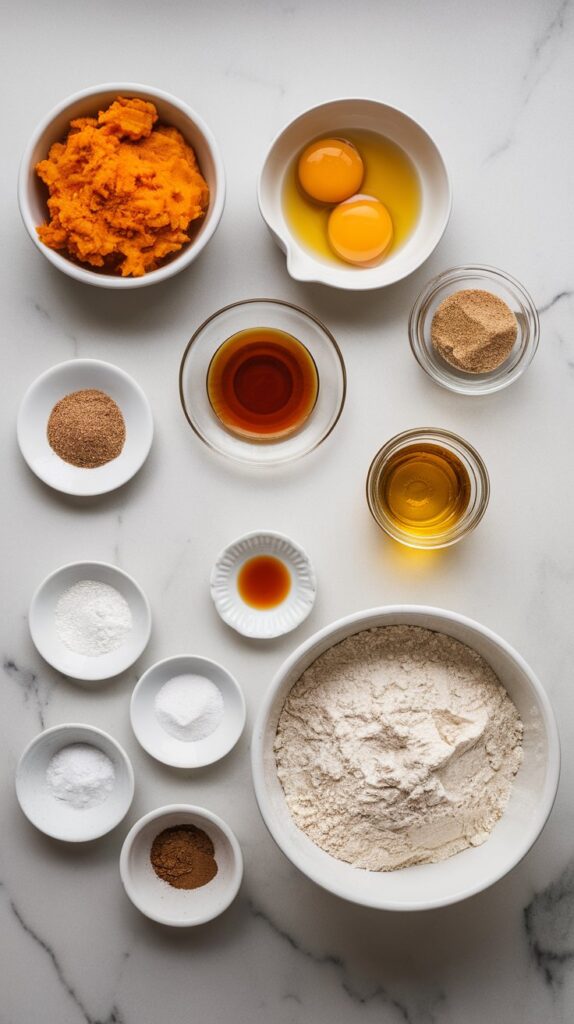 In a large bowl, whisk together 1 cup mashed butternut squash, 2 large eggs, 1/2 cup maple syrup, 1/3 cup brown sugar, 1/2 cup vegetable oil, and 1 teaspoon vanilla extract until smooth and combined.