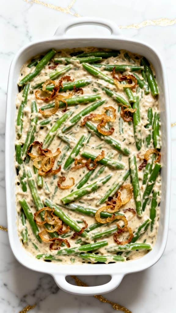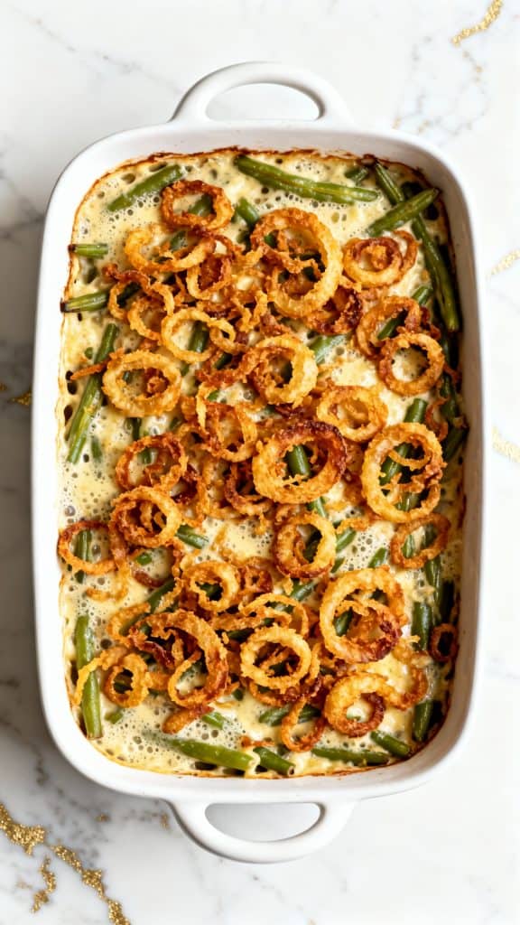 This Classic Green Bean Casserole is one of those recipes that just feels like home. It’s creamy, savory, and topped with those irresistible crispy onions.