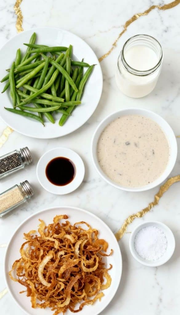 The starch in the green beans and soup thickens as it bakes, creating a rich, creamy texture. The crispy onions provide contrast in texture while the soy sauce adds umami, boosting the overall flavor without needing extra salt.