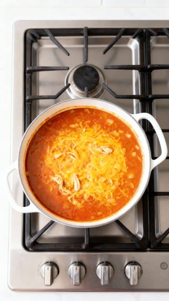 Masa harina thickens the soup naturally and gives it that signature enchilada flavor. Melting the cheese off heat keeps the texture smooth and prevents it from separating. Enchilada sauce acts as a flavor base that pulls everything together.