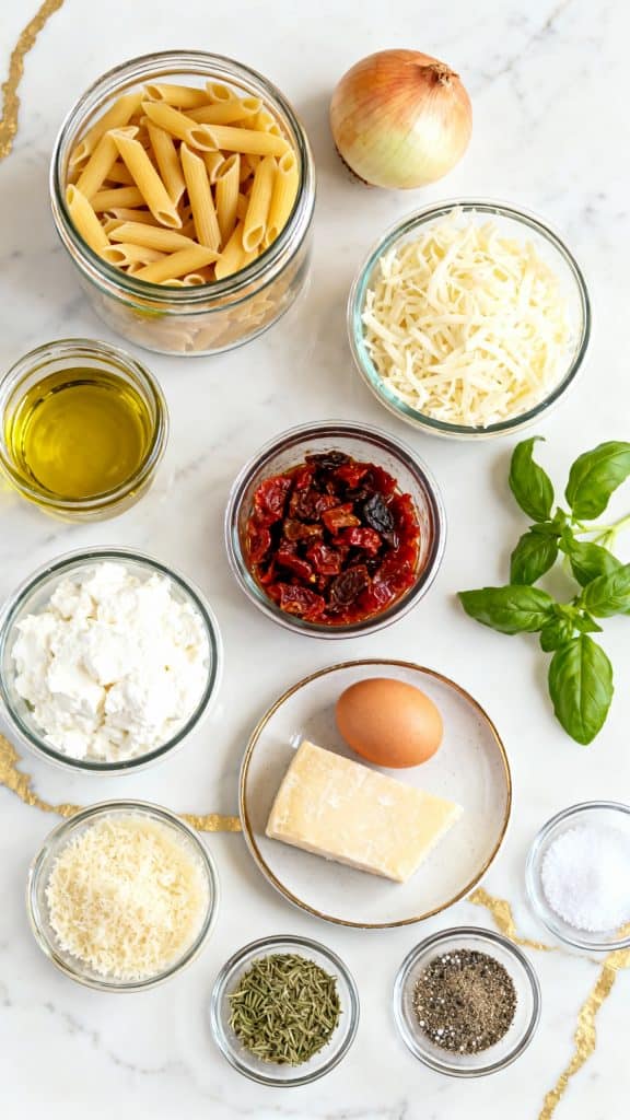 This is one of those cozy, creamy pasta bakes that hits the spot every time. It’s tangy from the sun-dried tomatoes, creamy from the cottage cheese, and packed with flavor.