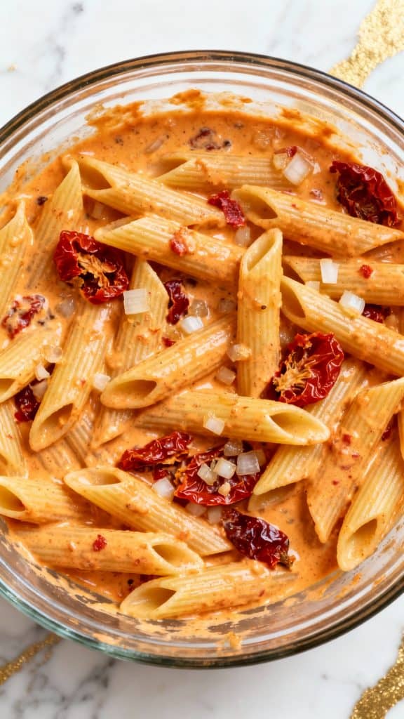 I first made this dish when I had extra cottage cheese in the fridge and no plan. I had a jar of sun-dried tomatoes sitting in the pantry and a box of pasta — it all came together in one of those perfect “throw it all in and see what happens” moments. Now it’s one of my go-to meals.