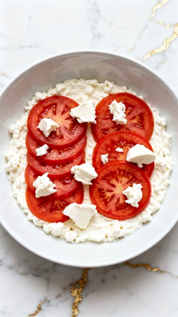 What makes it so good is the contrast. You get cool, creamy cottage cheese, juicy tomatoes, soft mozzarella, and bright basil all in one bite. It looks pretty, tastes fresh, and takes almost no effort.