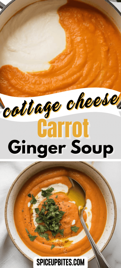 Carrots break down when simmered, becoming naturally sweet and smooth. Ginger adds warmth and a bit of spice. Blending cottage cheese into the soup not only thickens it but also emulsifies everything, giving it a silky finish without needing cream or butter.