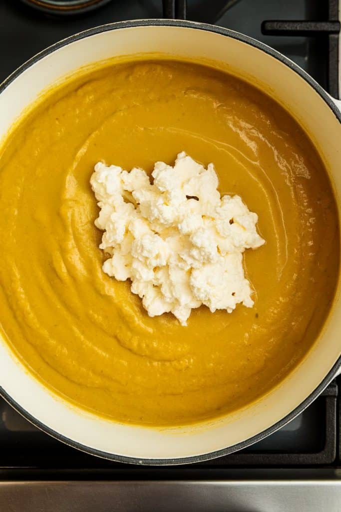 Blending the cauliflower makes the soup naturally thick and creamy without flour or cream. The curry spices are fat-soluble, so cooking them in butter and oil brings out their full flavor. Adding cottage cheese after blending keeps the soup creamy without curdling.