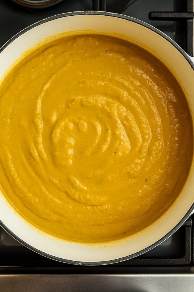 Turn off the heat. Use an immersion blender to blend the soup until smooth, or leave a few chunks if you prefer texture.