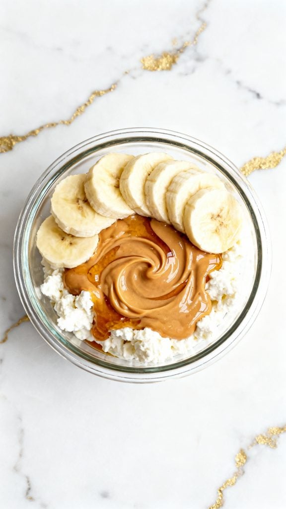 Cottage cheese is rich in casein protein, which makes it super creamy and slow-digesting. When mixed with peanut butter (which is high in healthy fats), it creates a thick, satisfying combo that keeps you full. The banana adds natural sweetness and potassium, and the chocolate chips give that perfect sweet bite to balance the saltiness of the peanut butter.