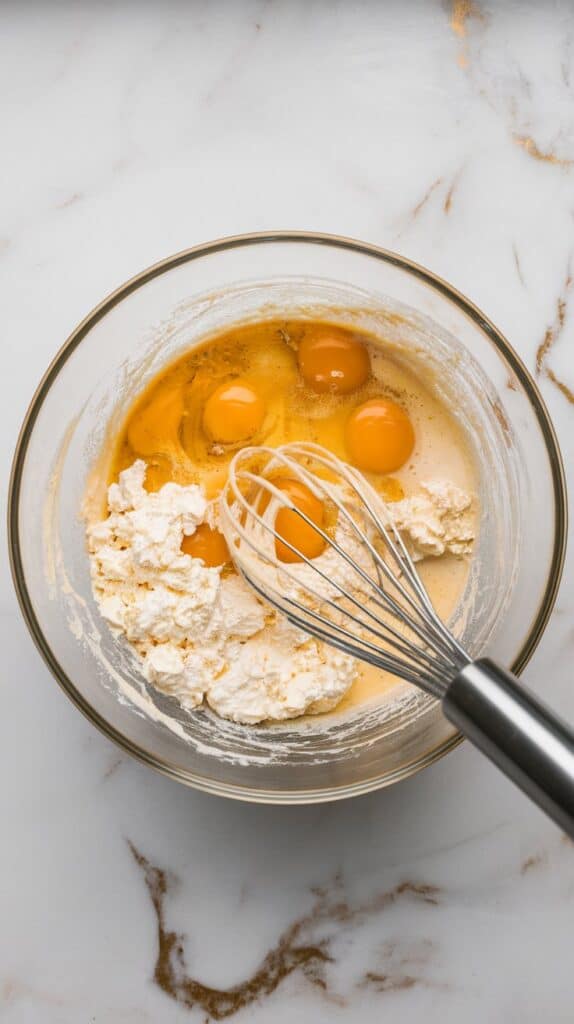 - Skipping the whisking: Blend eggs and cottage cheese well for the best texture