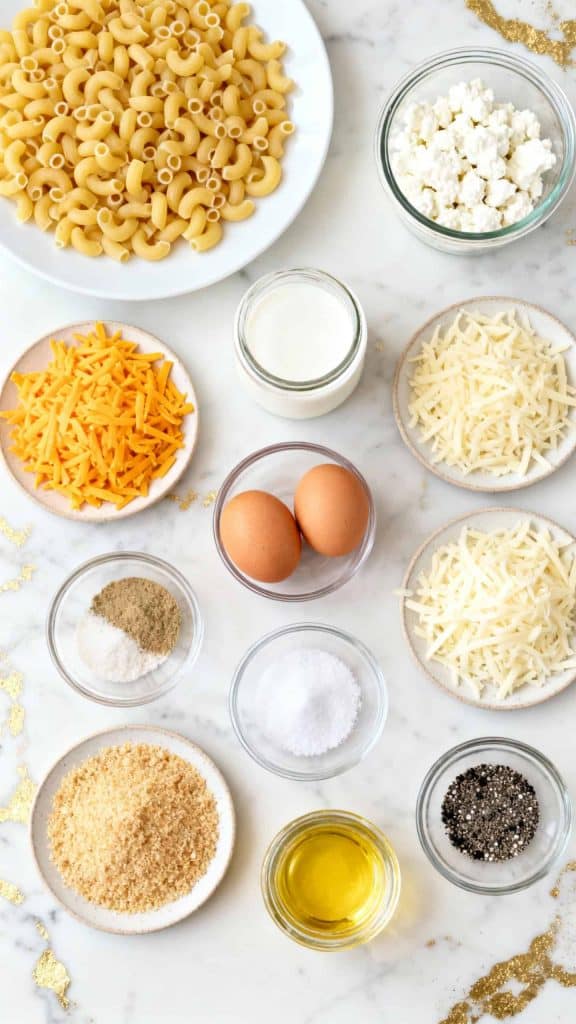 The eggs bind the casserole as it bakes, giving it that firm but creamy texture. Cottage cheese adds moisture and protein, and the mix of cheddar and mozzarella creates a stretchy, melty cheese layer while holding flavor. Undercooked pasta finishes cooking in the oven, soaking up all that creamy base.