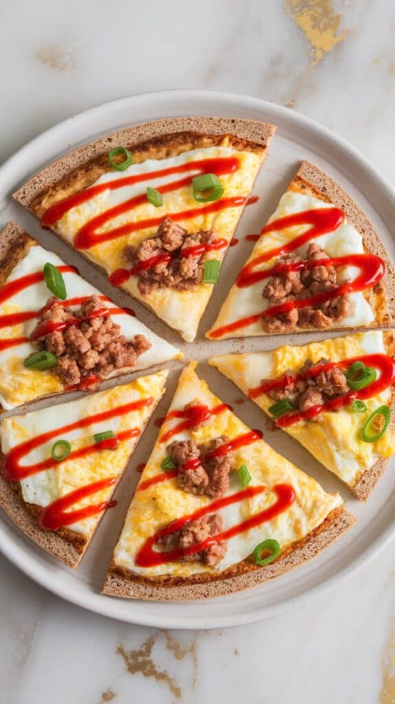 This breakfast pizza saved me from sad protein bars. I was tired of the same old breakfasts—eggs on toast, dry oats, you know the drill. One morning I had leftover flatbreads and some cooked sausage, and this recipe was born.