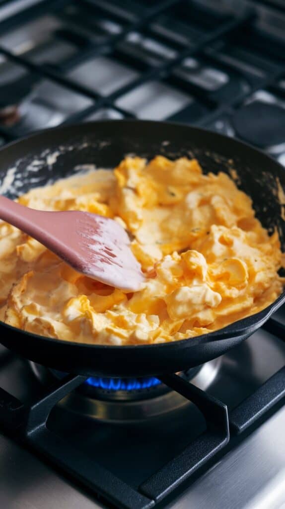 - Overcooking the eggs: They’ll dry out during baking, so keep them soft when scrambling