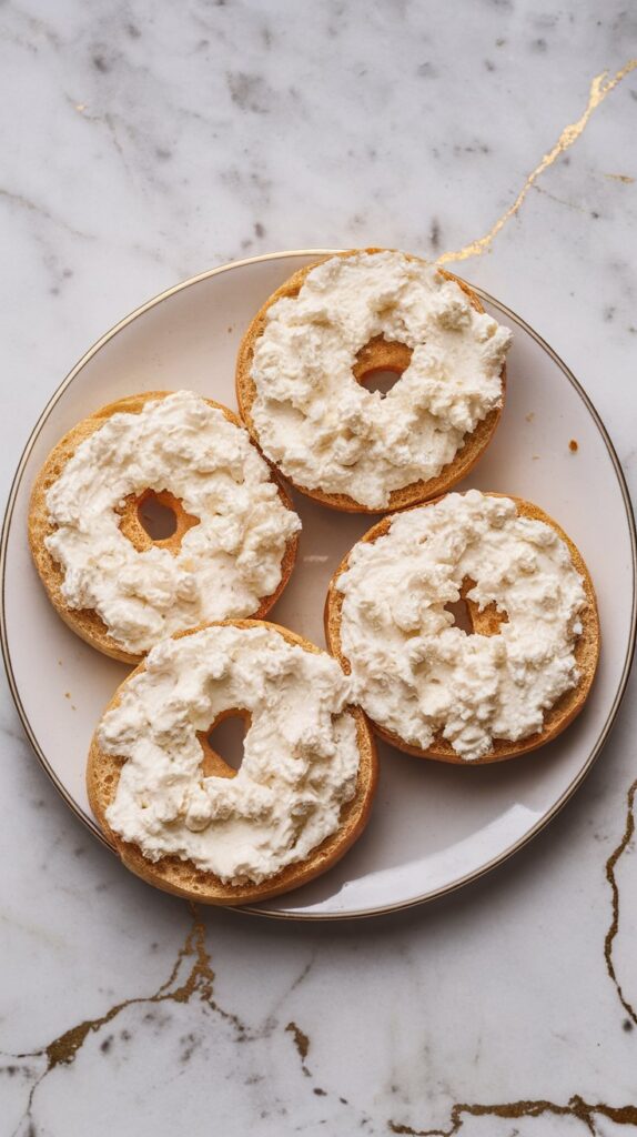 Spread 1/2 cup full-fat cottage cheese evenly over both toasted bagel halves.